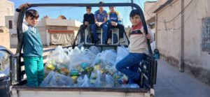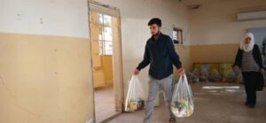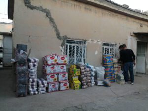 1) Lebensmittelkörbe für Inlandsvertriebene aus Afrin in Amuda: 130 Lebensmittelkörbe für 130 Familien.